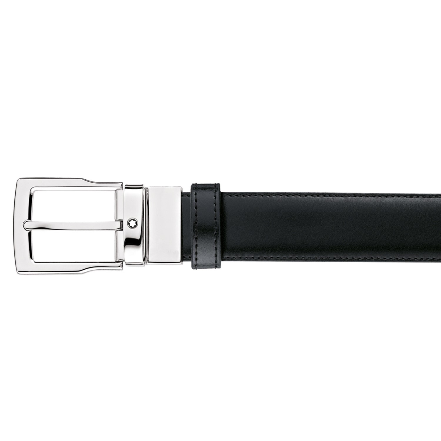 MATERIALE: in pelle di vitello pieno fiore europea, con effetto lucido che è esclusivo di Montblanc, concia al cromo, tintura passante. Cinghia reversibile nera e marrone, con finitura lucida.